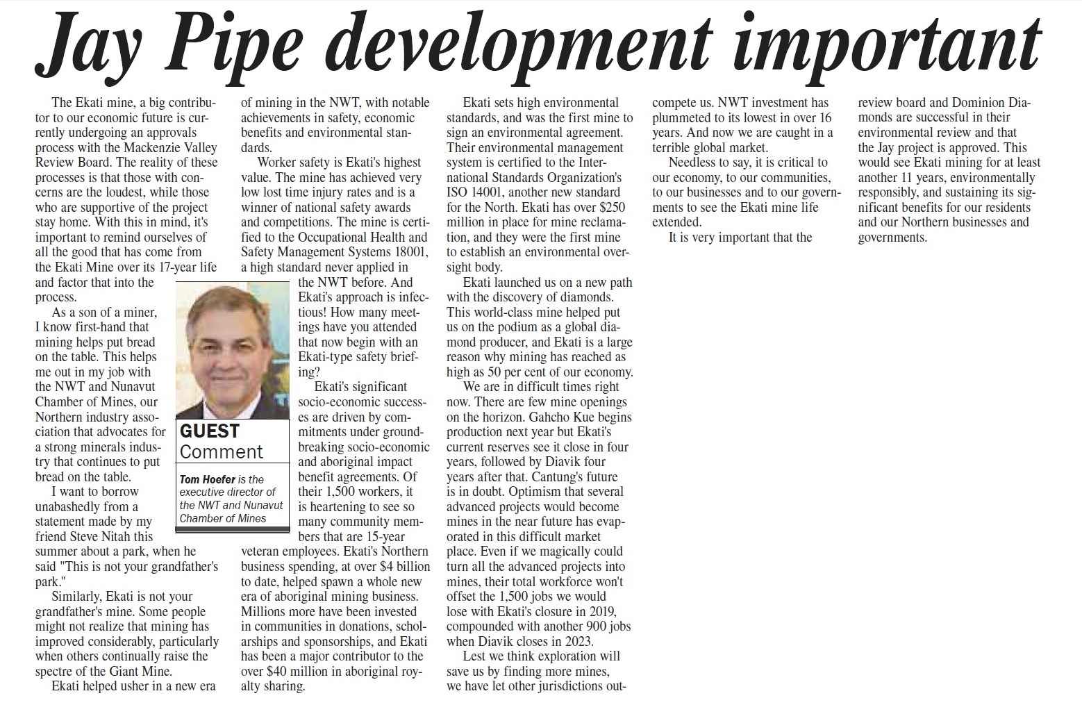 Recent Editorial: Jay Pipe (Ekati) Development Important