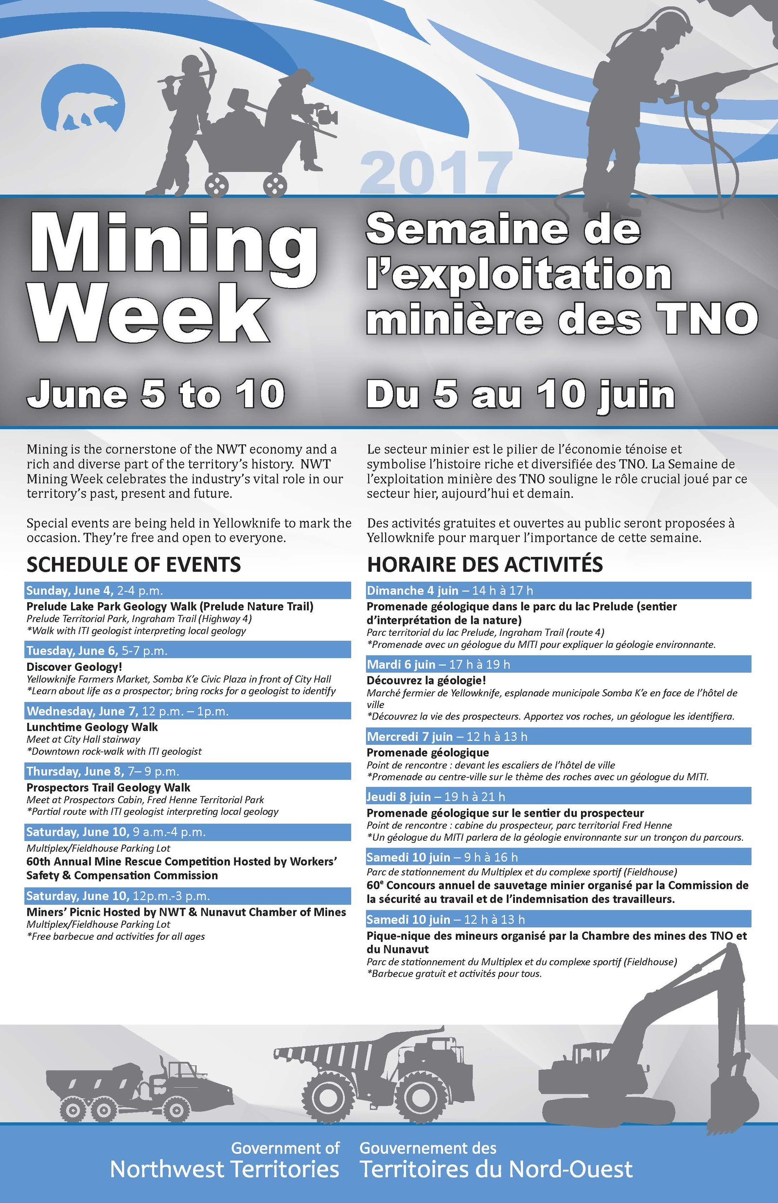See the poster of activities here: http://www.miningnorth.com/_rsc/site-content/miningweek/Poster-MiningWeek_2017.jpg